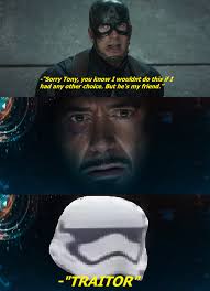 Know your meme traitor. TR-8R the Stormtrooper also known as Tray Tor and TR8-T0R refers to a character from the sci-fi space opera film Star Wars Episode VII. What he didnt know was that his son had already turned him in. If you turn me in youre a traitor and you know what happens to traitors.