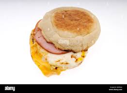 A hot brekkie made compact. Topped with processed cheddar cheese nestled comfortably in a toasty English muffin. Once the sandwich is stacked it may seem like its ready for eating but its not.